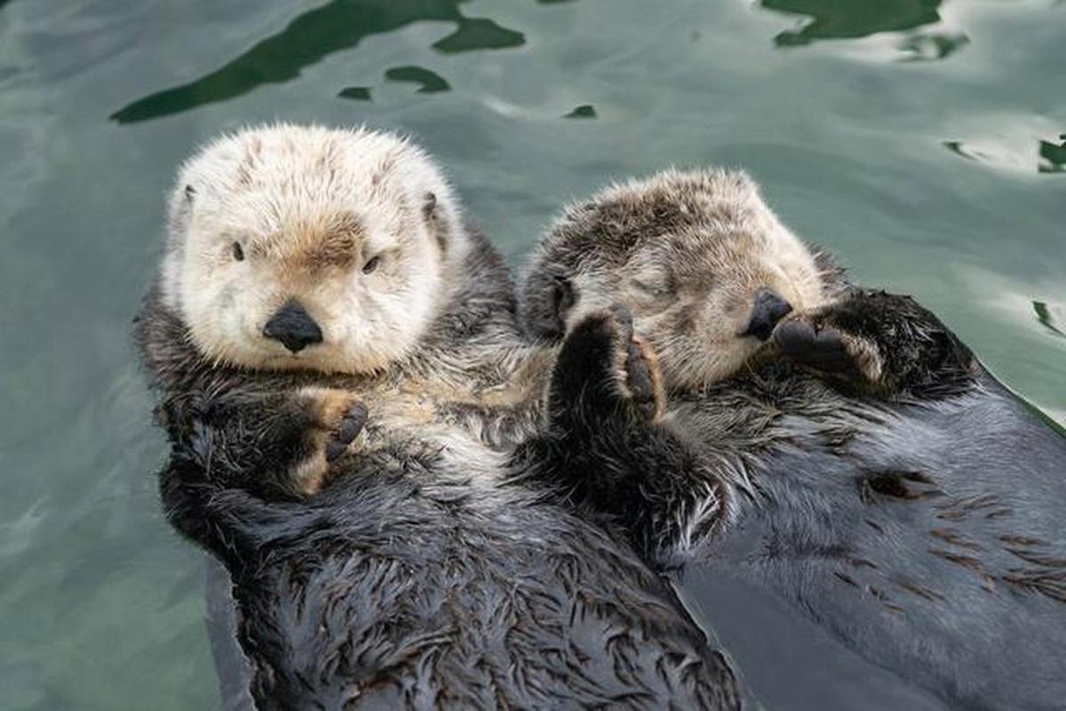 常话说,好朋友~手拉手~一起走。海獭们往往都是浮在水面上睡觉,特别是在海藻多的地方。它们经常会拉住身旁同伴的手,这样会更有安全感,以防止睡迷糊了被飘走而找不到伙伴们。