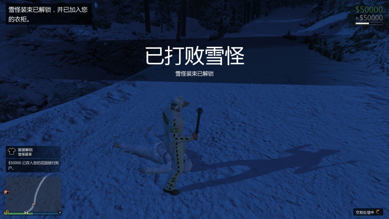 最终击败雪怪,获得5万游戏币、“雪怪套装”。