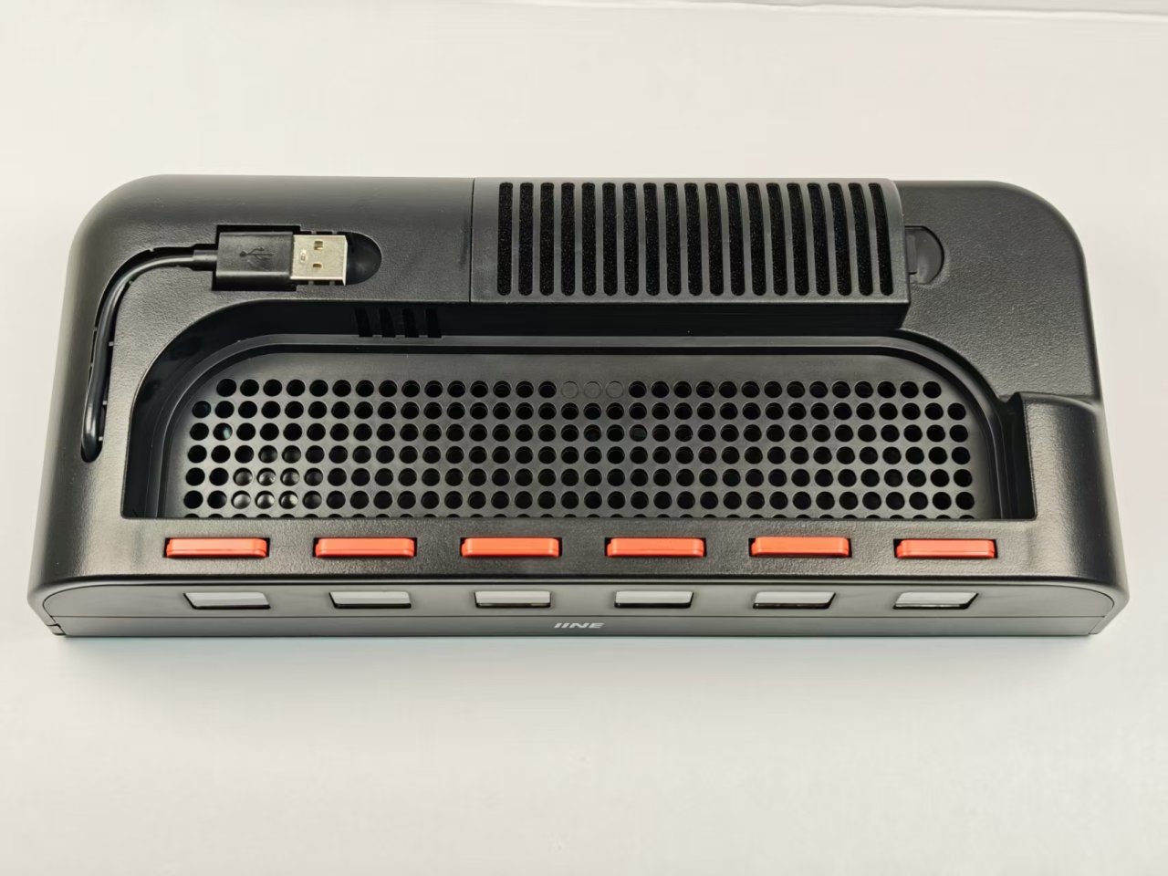 首先散热底座部分使用了光线感应技术,将NS2的官方底座直接放上去就可以,将散热底座附带的USB插口接入NS2,再将NS2官方底座接上电之后,就可以正常工作了,当Switch2切换投屏模式风扇自动开启,断开投屏或主机则同步进入休眠,不需要我们手动开关。