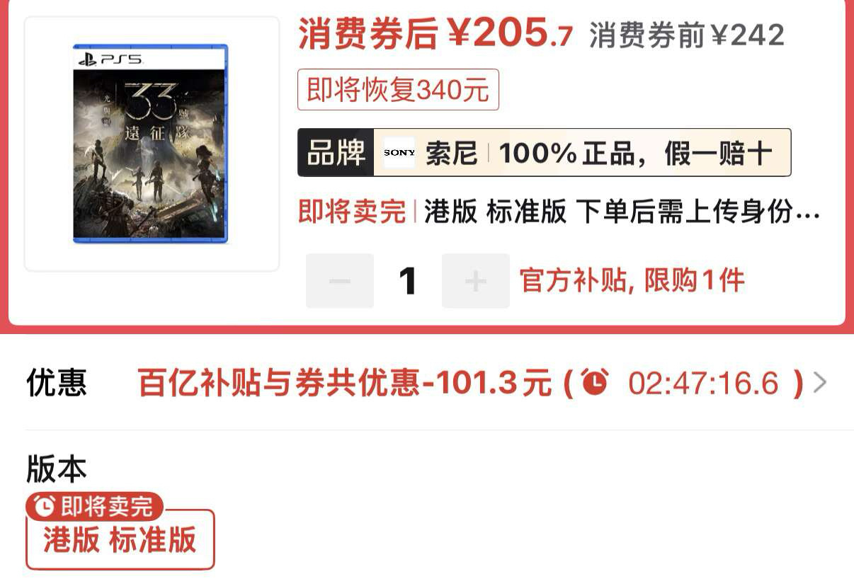 国行确实上架了,可惜并没有大家形象中的把国行干到1开头。个人认为作为真独占第一方大作,一开头的还是有点不现实的,至少也得到明年618