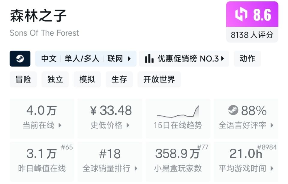 新史低,多人在线合作生存游戏,7折新史低29R!