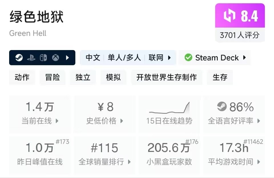 8R的绿色地狱!可以联机生存建造游戏,比森林硬核一点!