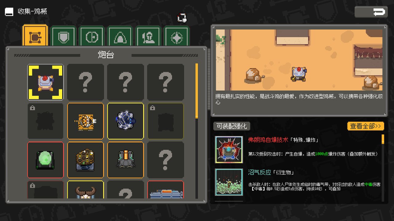 在《鸡械绿洲》中有着非常多的鸡械可供玩家选择。