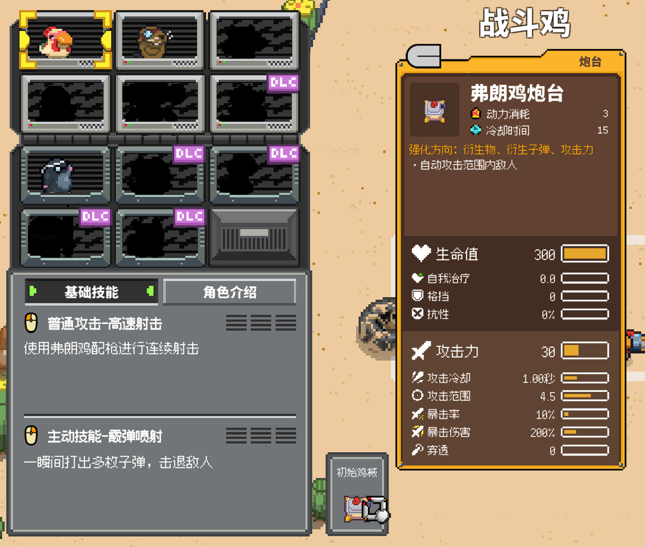 《鸡械绿洲》是一款由BlackLight开发、Mammorize发行的复合型策略游戏,融合了塔防、肉鸽和俯视角射击元素。