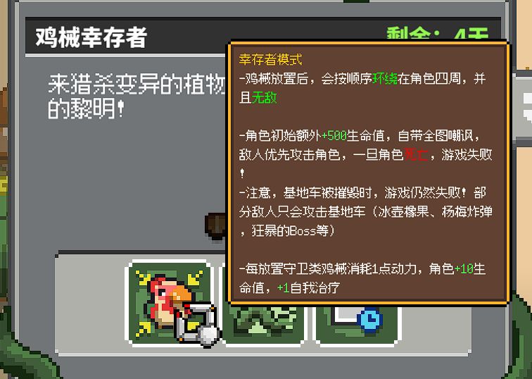 《鸡械绿洲》除了以上所说的标准模式外,还有一个非常特殊的模式:突变模式。