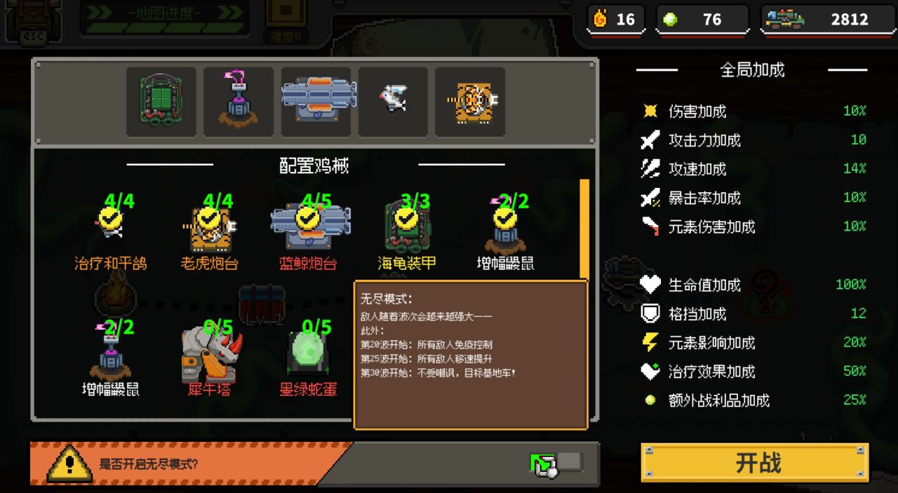 当来到最后一关时,玩家还可以选择是否开启无尽模式。只要通关无尽模式第一关后,即使之后失败也算整体通关了这一大关。