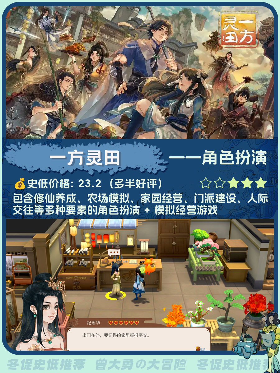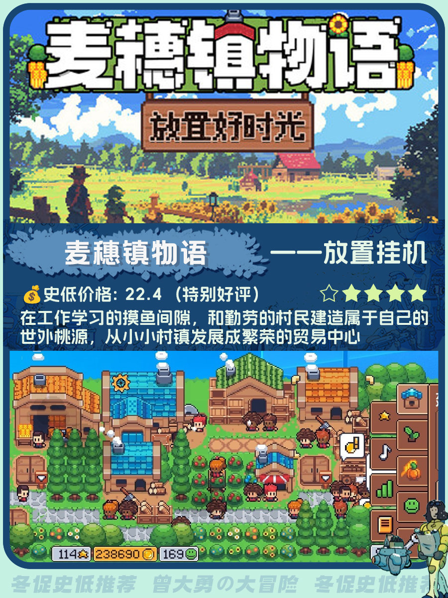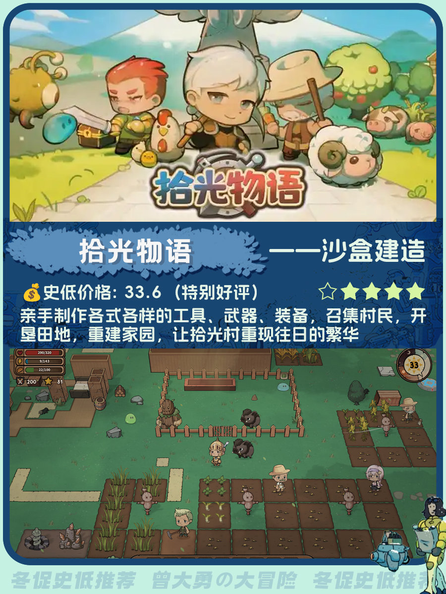又整理了一些正在打折中的小品级种田游戏,包含史低价格、玩家评分、游戏概述,这期十二款