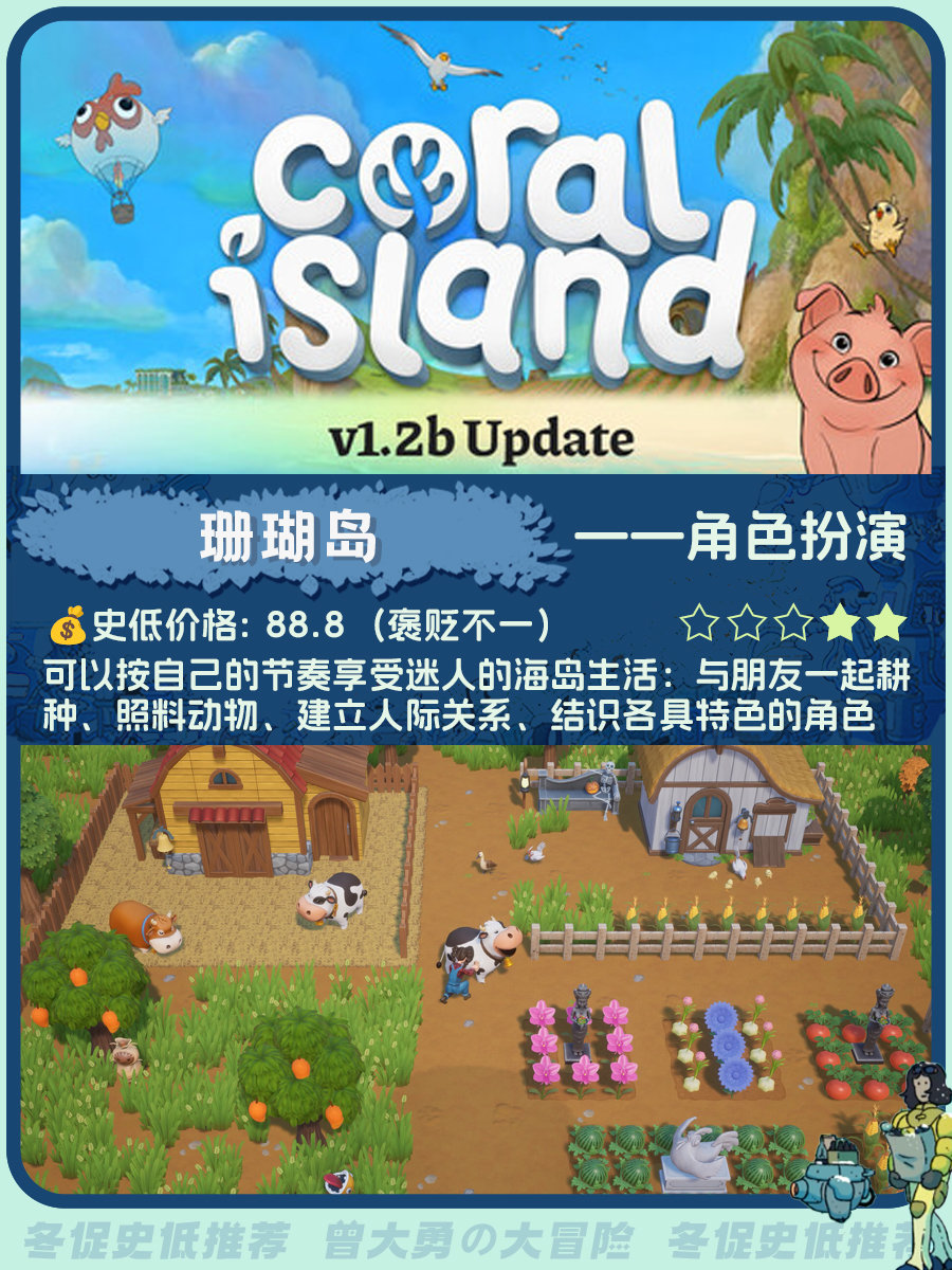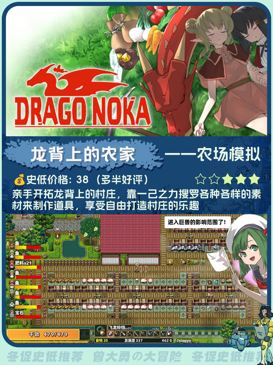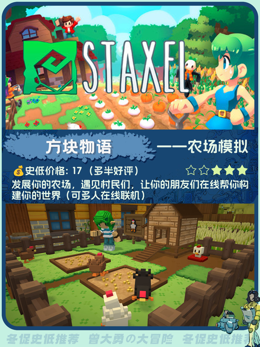 又整理了一些正在打折中的小品级种田游戏,包含史低价格、玩家评分、游戏概述,这期十二款
