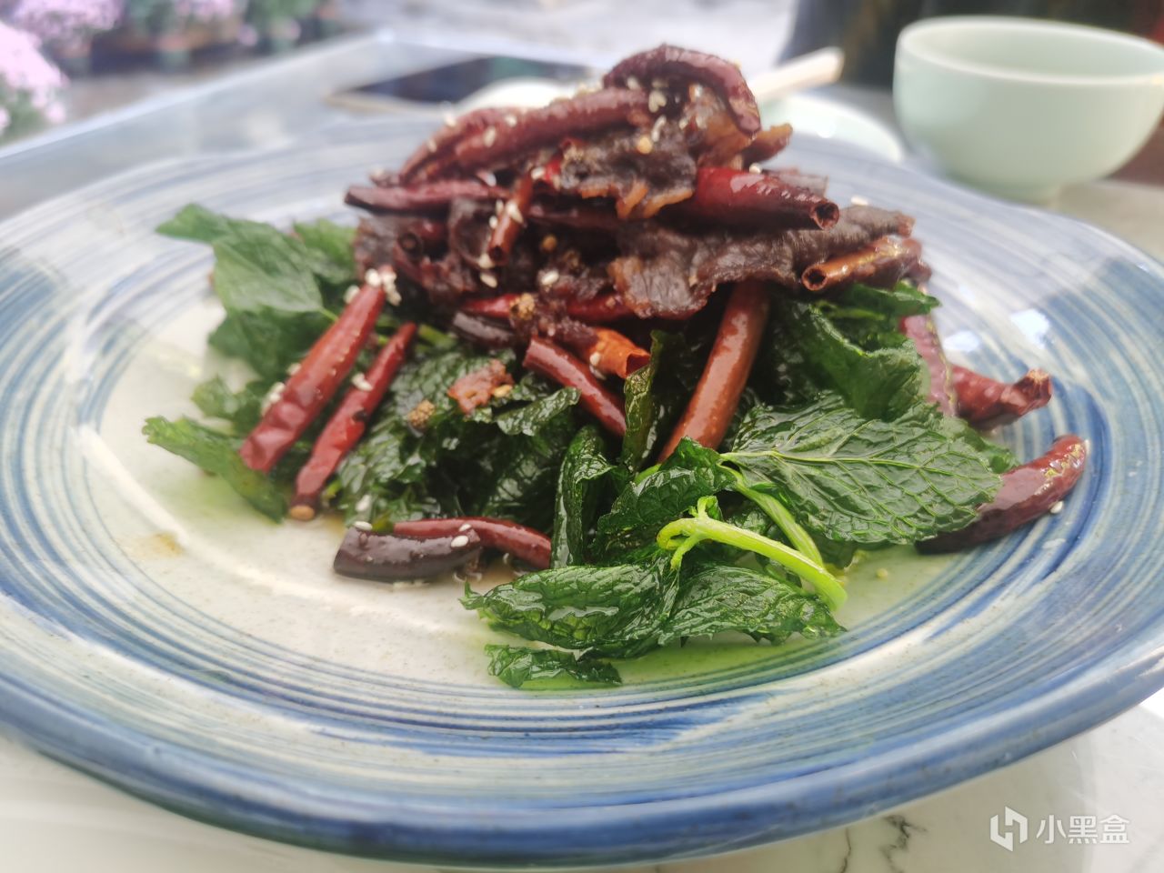 从山上下来腿都软了,去山脚下一家猪排面馆吃饭。这种面是以小面为底,放了几块卤制入味的大肉排,吃起来十分有滋味。然后又找了一家椒麻鸡,就是把多半只鸡提前煮好切块,吃的时候洒满红油汤料,属于冷吃鸡。价格不便宜,味道也没有特别惊喜。不是很推荐。