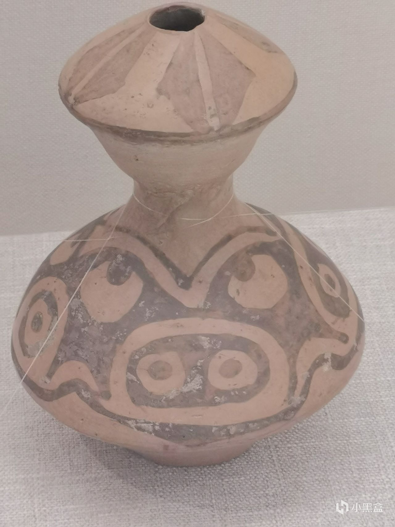 除了铜奔马还有其他很多青铜制品,比如铜马车仪仗俑,类似的铜制品在西安还有一组,出土于兵马俑博物馆。还有比如长得有点像树,但其实是插满蜡烛的的青铜台灯,很有气派。但比起这些,更让我感兴趣的是一组石器时代出土的陶罐子,上面的花纹图案不仅复杂而且排列整齐,这不是一帮原始人搓出来的吗?还有一只上面画着二师兄,非常生动。令人印象深刻。