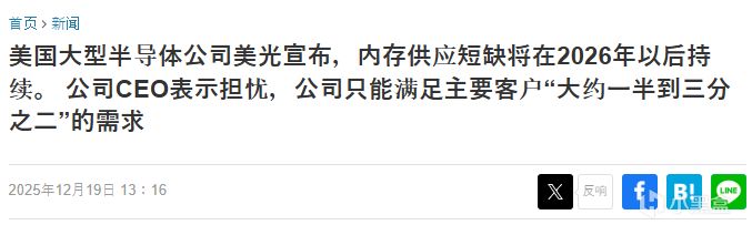 为优先保障AI数据中心需求,美光已于本月宣布退出消费级品牌“Crucial”,2026年2月起停止相关内存和SSD出货。此举进一步加剧一般用户市场短缺,美国BTO电脑厂商也出现订单爆棚、暂缓接单情况。