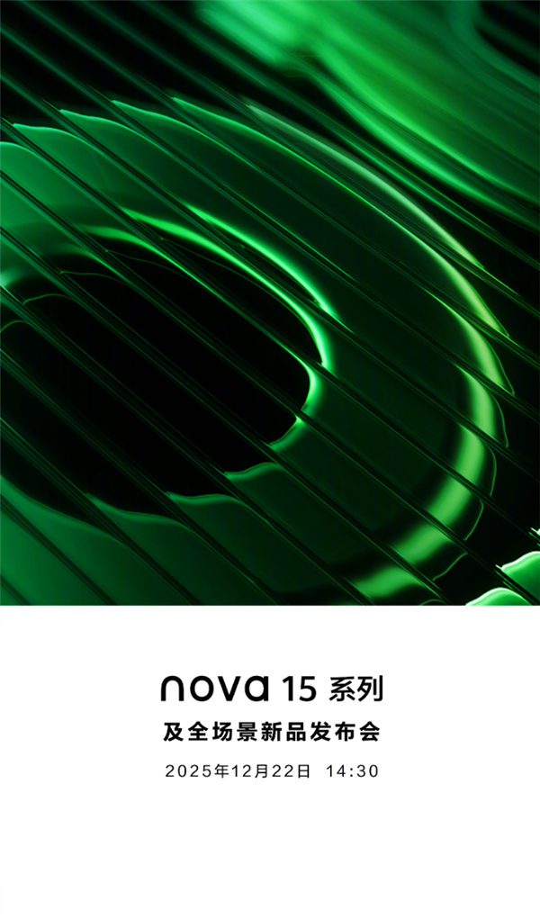 快科技12月21日消息,华为nova 15系列及全场景新品发布会将于12月22日14:30举办,本次发布会将推出华为今年压轴大作——nova 15系列,以及全新平板、智能手表等产品。