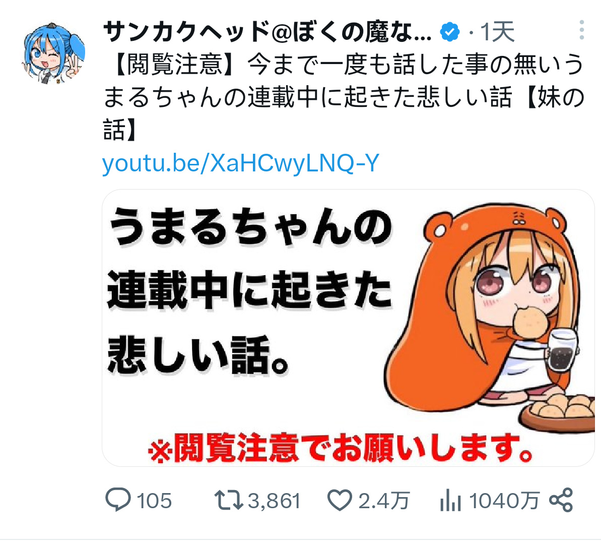 干物妹小埋的作者三角头老师在自己的YT频道上传了一部影片,并在其中首次公开谈论了连载期间发生的一件悲伤的事情