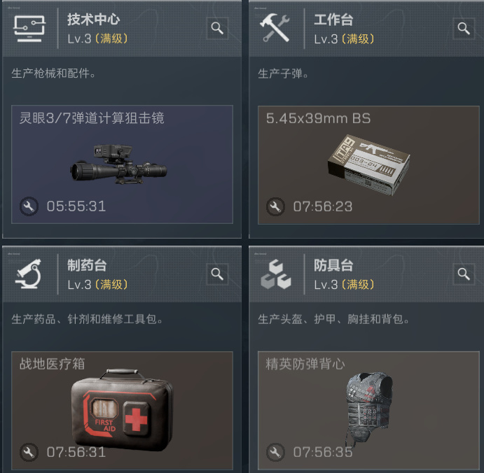 今日特勤处制作:灵眼狙击镜,金血包,老塞甲,7.62x39(4800以上出售)
