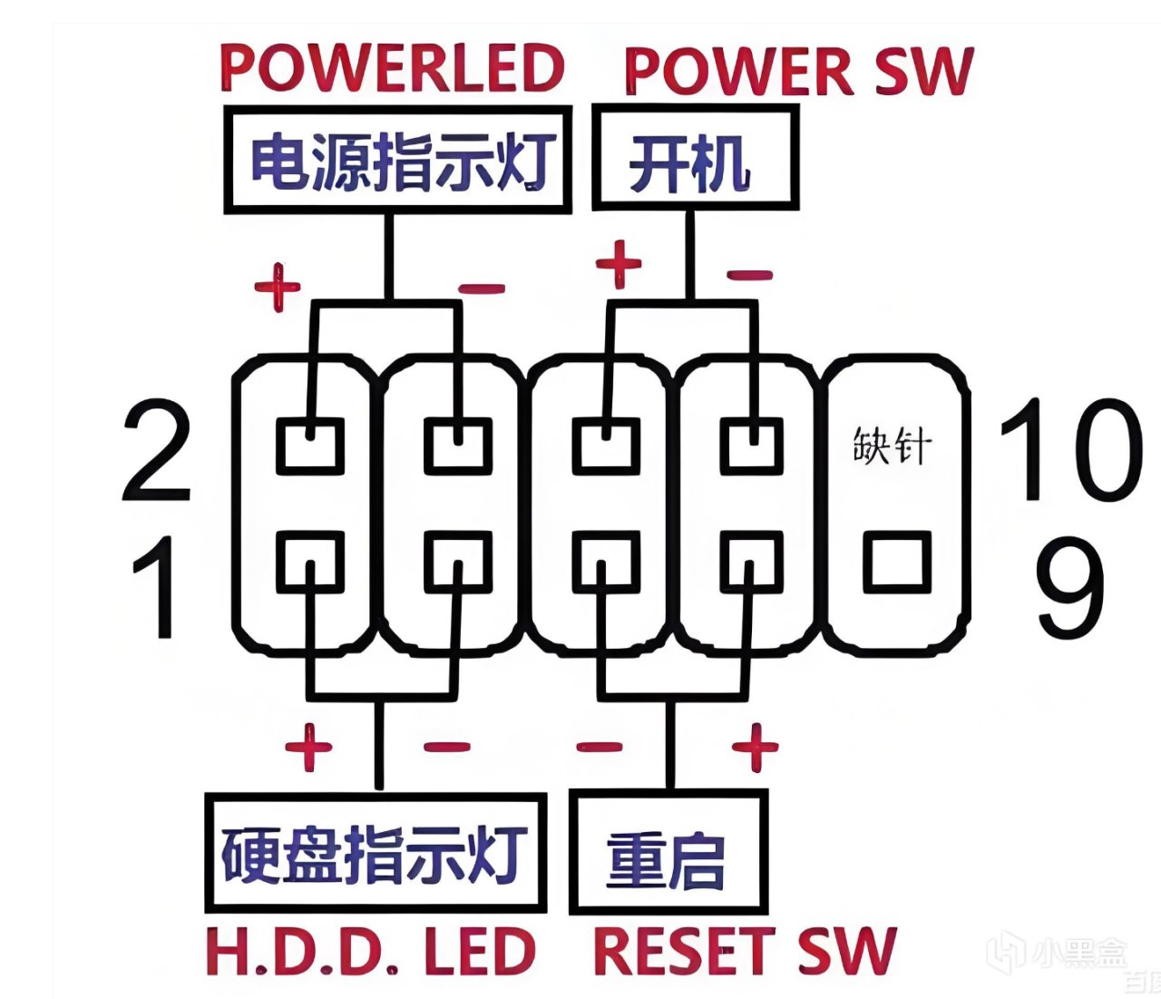 以上只是针对一些性价比主板和机箱的解释,目前主流机箱已经把开机针脚集合成一个插口通常标注为PANEL。