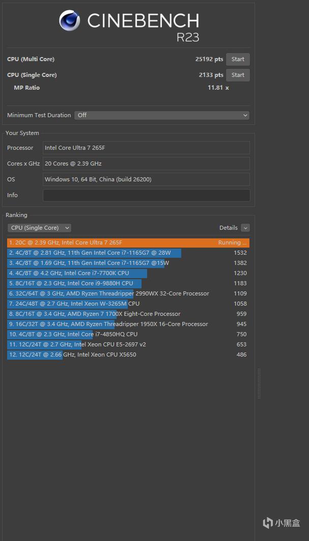 ▼跑個CineBench R23,單線程得分2133,多線程得分25192,多線程分數不錯。