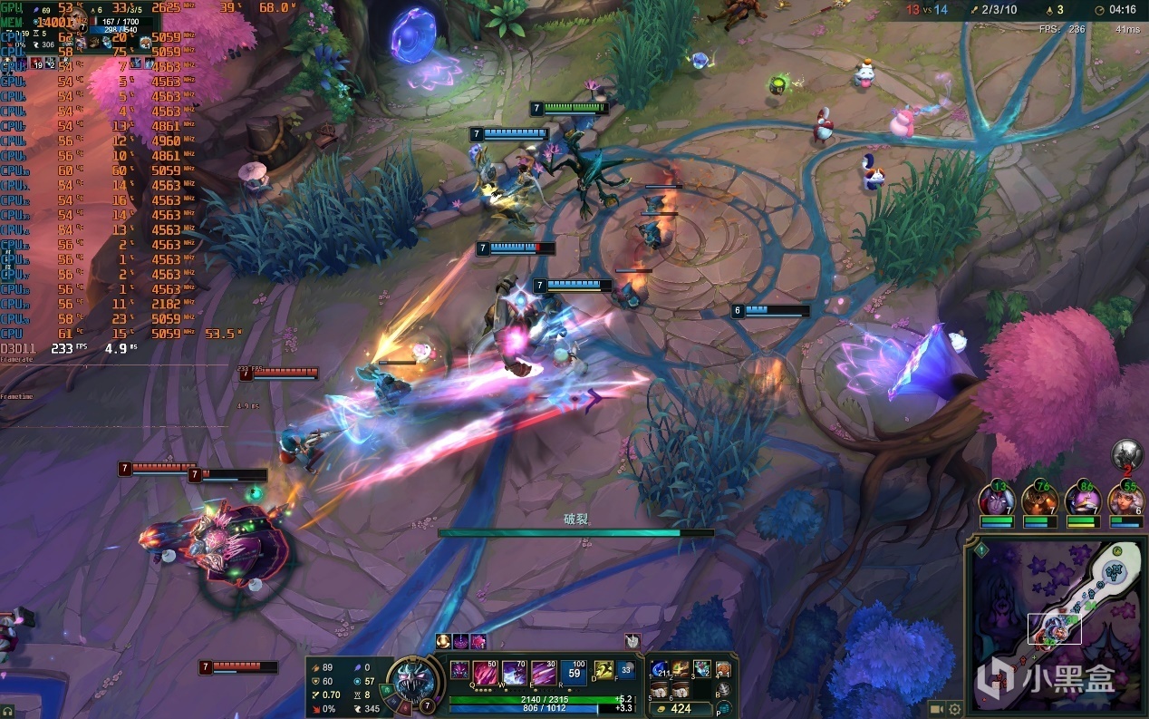 ▼日常團戰情況,遊戲幀數也能保持在230幀左右,很流暢。
