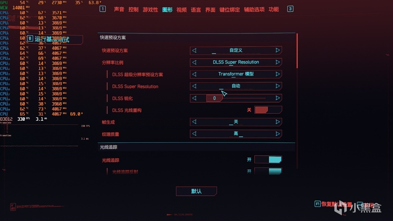 ▼賽博朋克2077,2K分辨率,光追超級畫質,大力水手DLSS自動,拼好幀關閉。