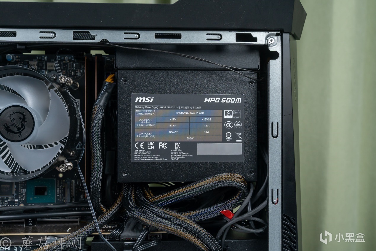 ▼主板旁邊是一顆SFX電源,額定功率500W,其中+12V輸出最大499.2W。另外,這個電源的參數表很有意思,只有+12V和+12VSB輸出。
