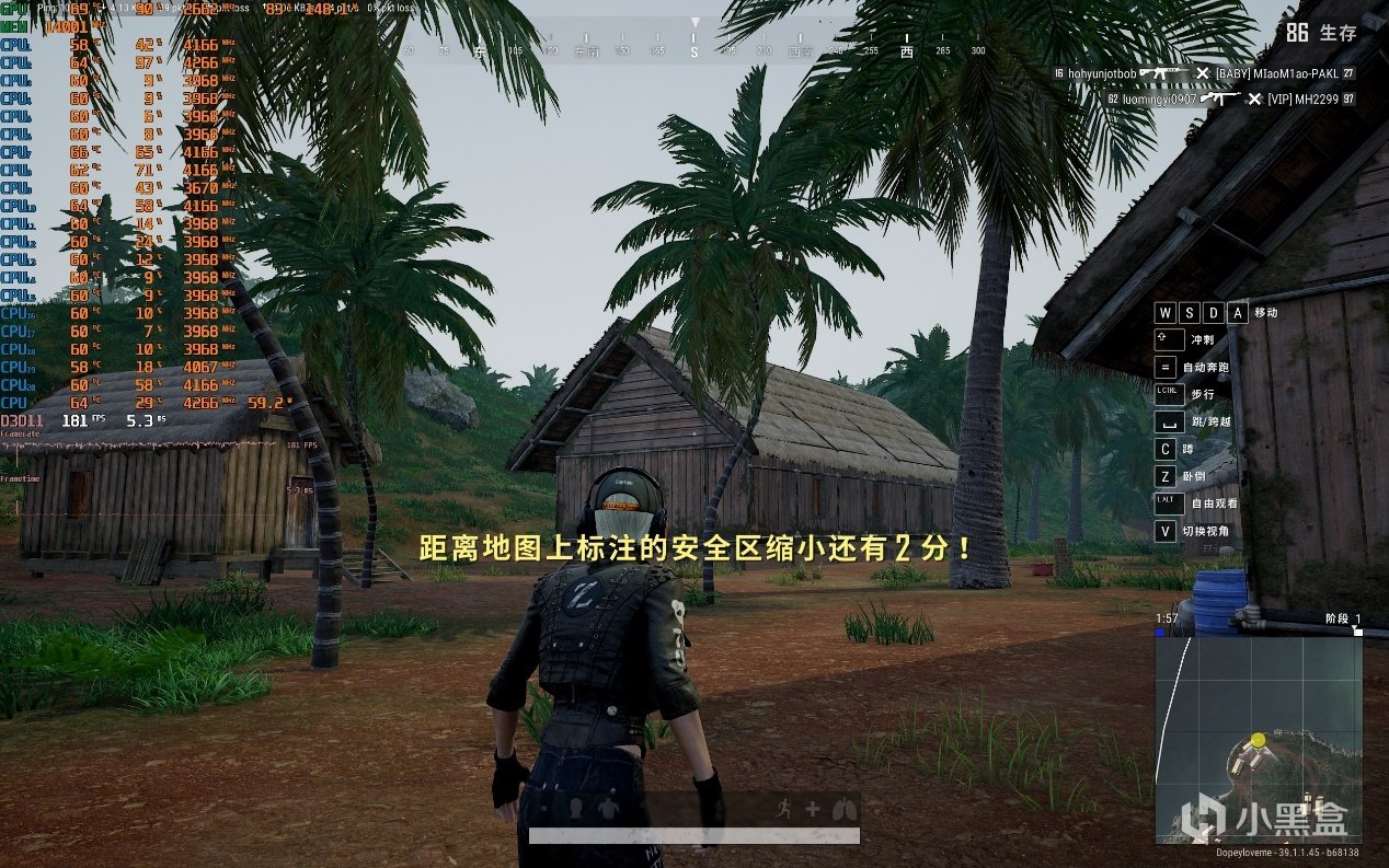▼絕地求生PUBG,2K分辨率,全高畫質,室外遊戲幀數在181幀左右,很流暢。
