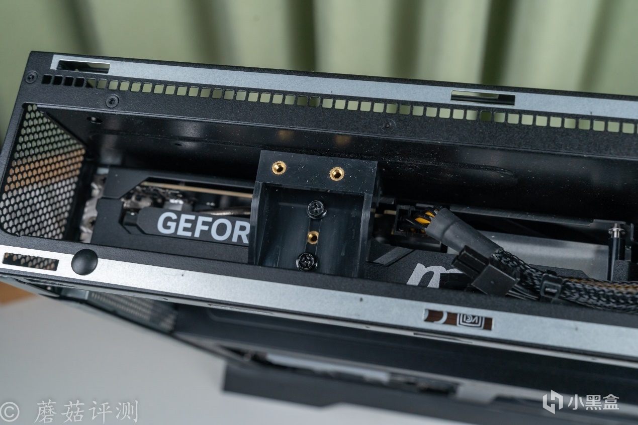 ▼在顯卡的頂部,還能看到專門設計的顯卡支架,輔助固定顯卡,在運輸過程和日常使用過程中輔助固定,提高整體的穩定性表現。