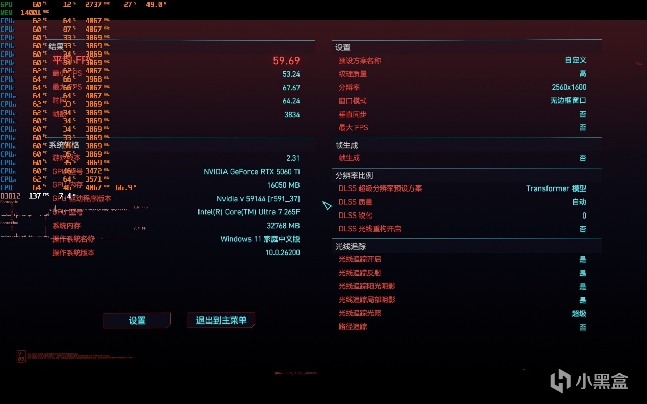 ▼整體的平均遊戲幀數在59.59幀,無限接近60幀及格線,稍微降低一丟丟畫質,就能過線。