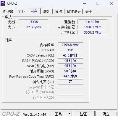 ▼內存頻率穩定在5600MHz,時序46-45-45-90。