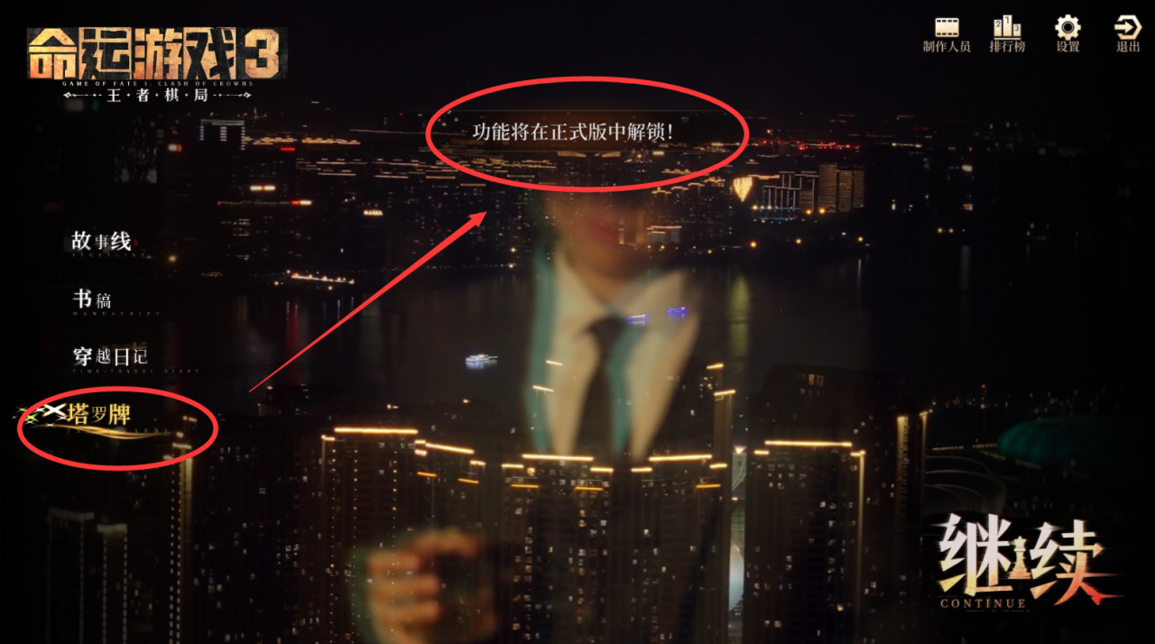不过一般来说,我强烈建议你在游戏发售之后的第一时间入手游戏并尽快开始游戏,以图尽量早地开启塔罗牌系统。《命运游戏3:王者棋局》是在12月25日10点发售,如果条件的话,建议在第一时间购入并开始游玩,抢个先机。