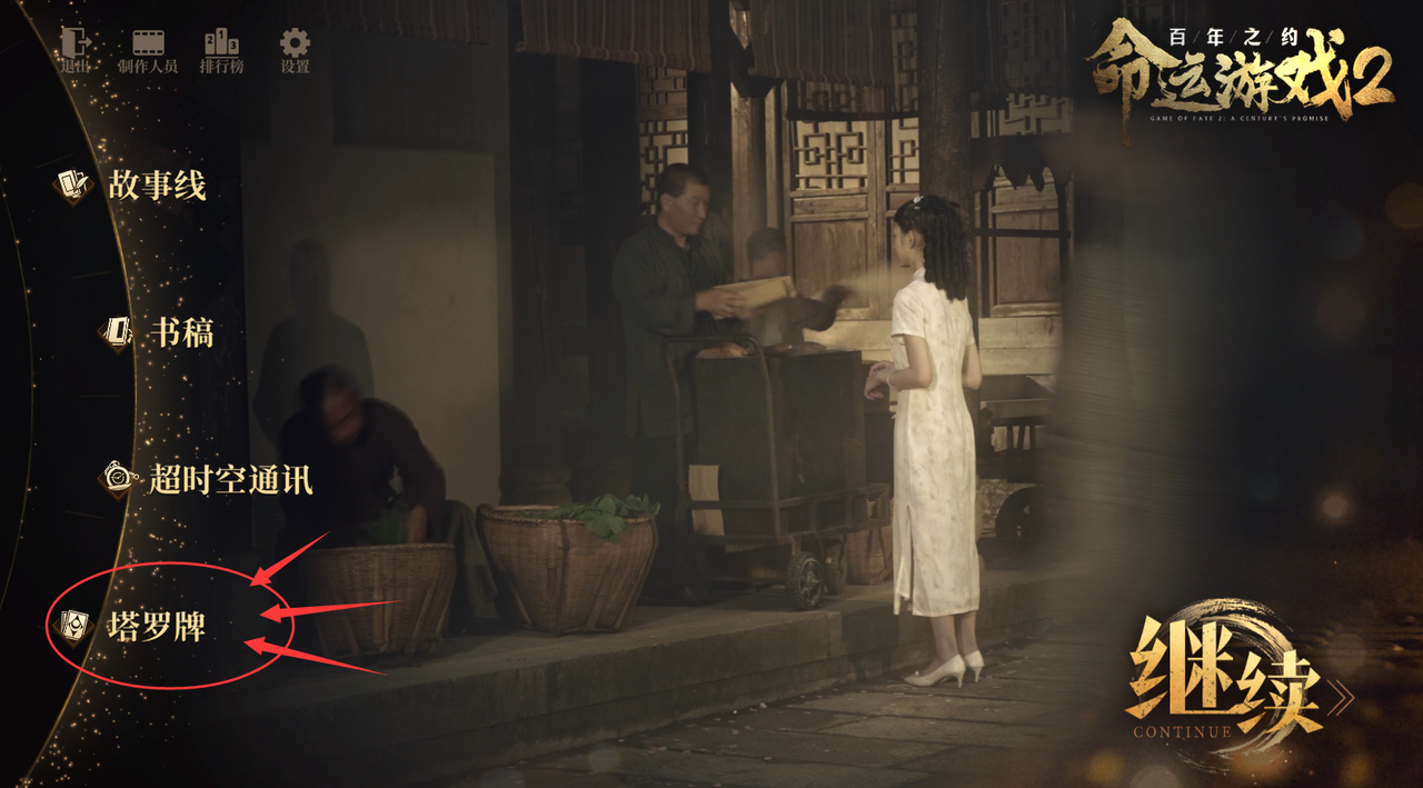 当你拥有《命运游戏3:王者棋局》这款游戏之后(DEMO版无塔罗牌系统,所以本文涉及到这方面的图片都是借用《命运游戏2》的相关截图,这里再次跟大家说明一下,之后不再赘述),进入游戏开始游玩,这时候系统就会开始计算你的游戏时长。当你的游戏时长达到3小时之后,就会自动开启塔罗牌系统,直接在主界面就能找到,如下图所示。