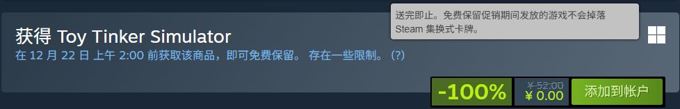 原价52元的Toy Tinker Simulator,于北京时间12.22,2:00截止免费领取!