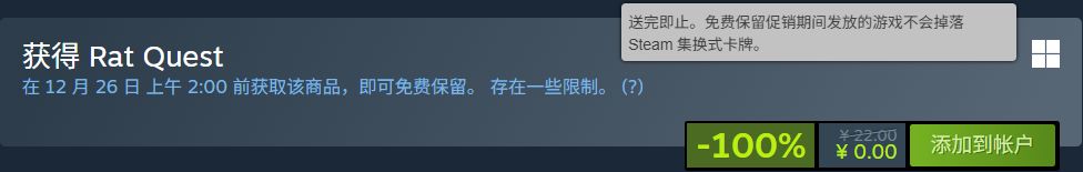 原价22元的Rat Quest,于北京时间12.26,2:00截止免费领取!