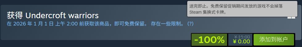 原价15元的Undercroft warriors,于北京时间2026.01.01,2:00截止免费领取!