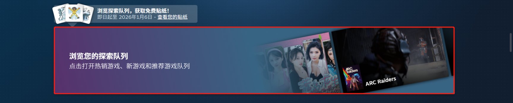 steam商城首页下划找到探索队列