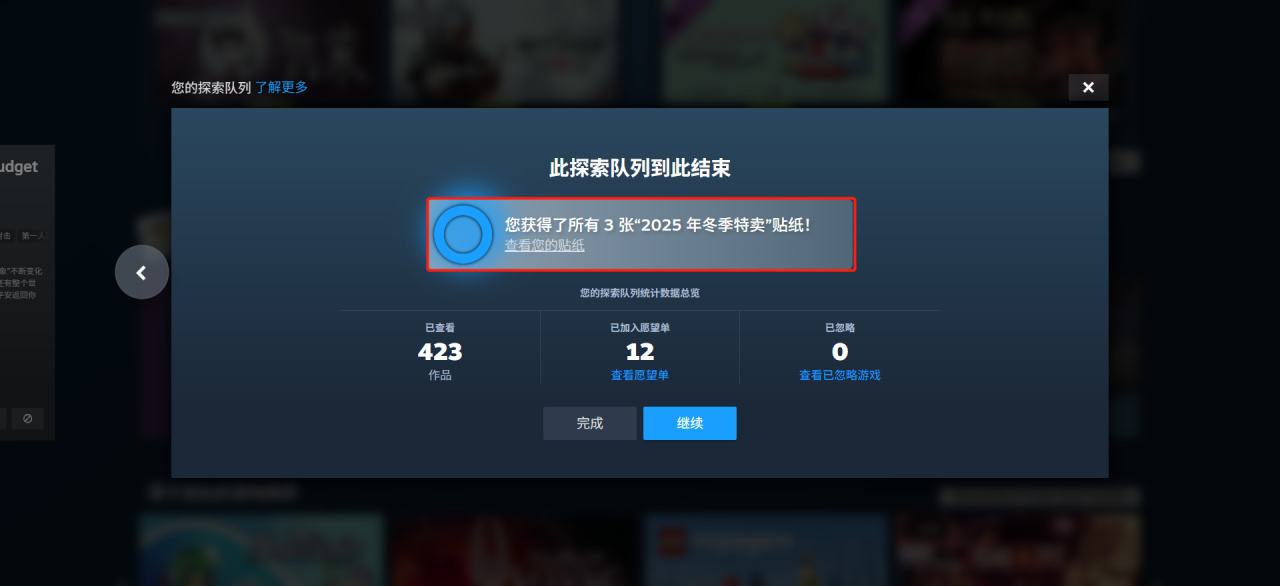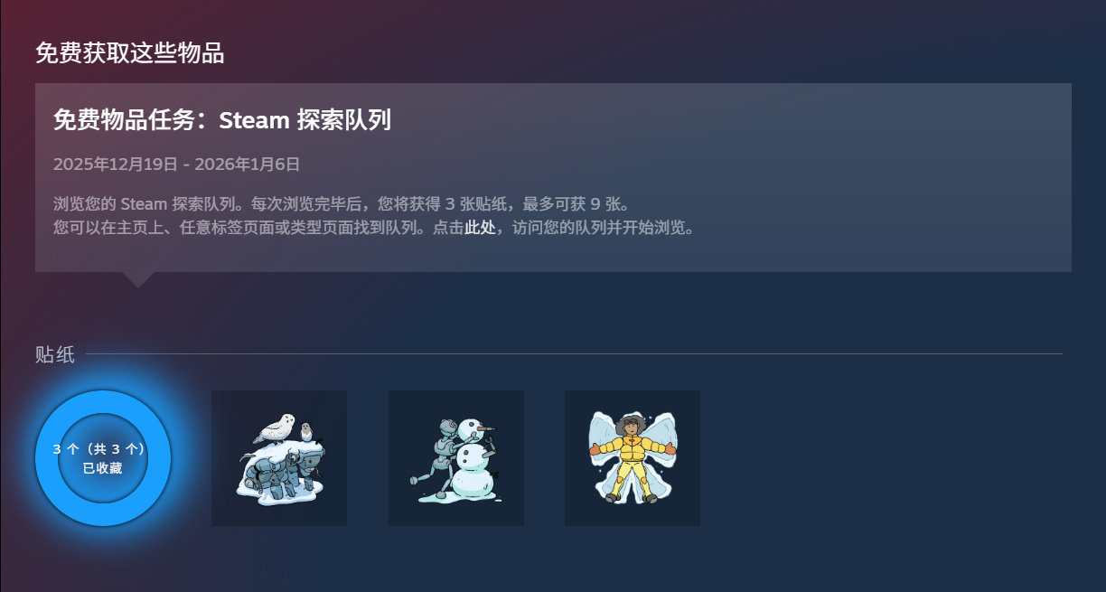 这次一共就3张贴纸,刷一次探索队列就可以了