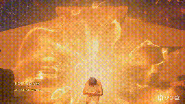 接下来要说说新面甲啦,第一个出场的是荷鲁斯面甲,戴上后可以拥有荷鲁斯的苍穹之翼,获得自由飞行与空中攻击能力。荷鲁斯是古埃及神话中法老的守护神,拥有保护王权、治愈疾病、掌控天空和驱邪避凶的神力。这一点也和视频中的形象对应上了: