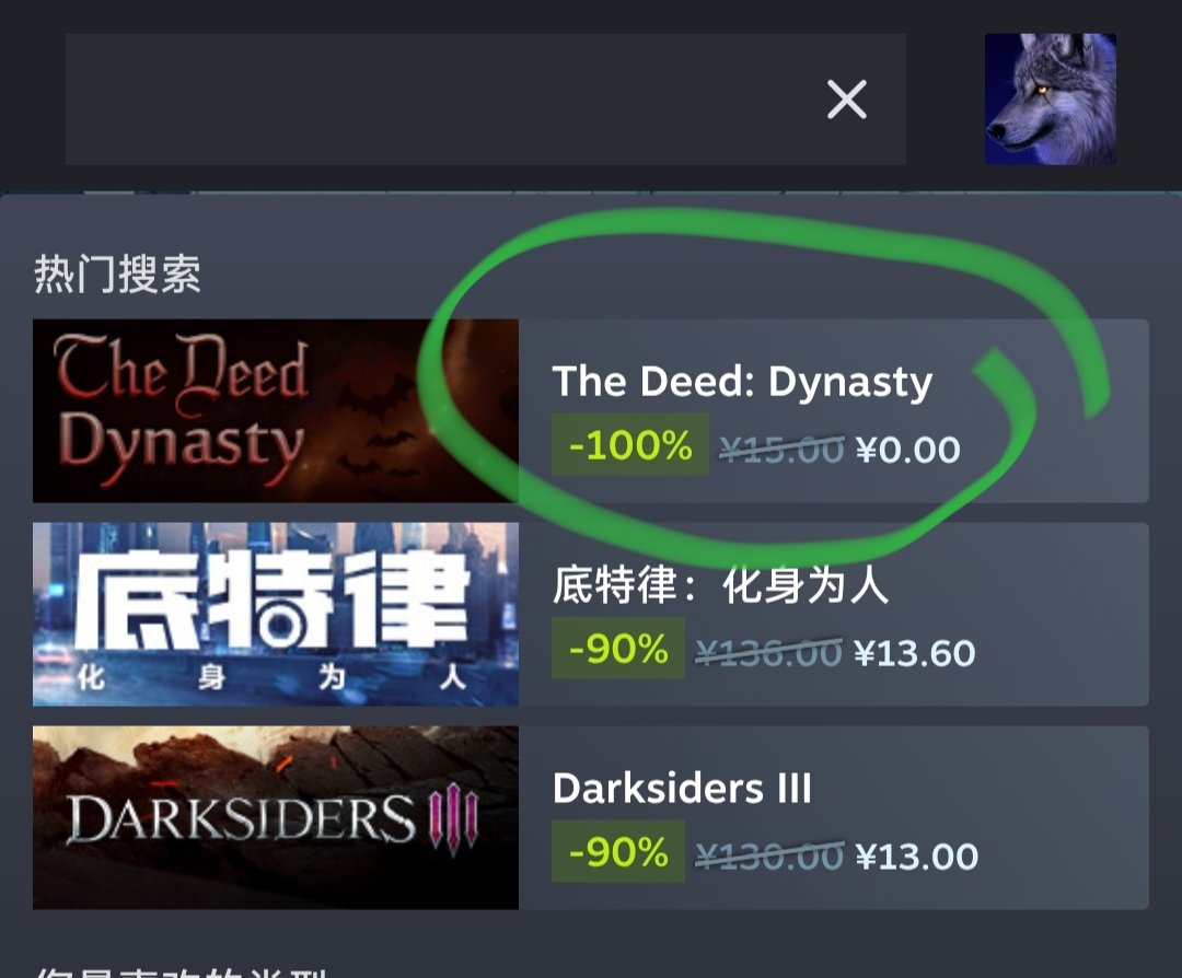 领取方法很简单,steam点在搜索栏这里就可以看到了,会自动跳出来。第一个画圈这个这个就是了