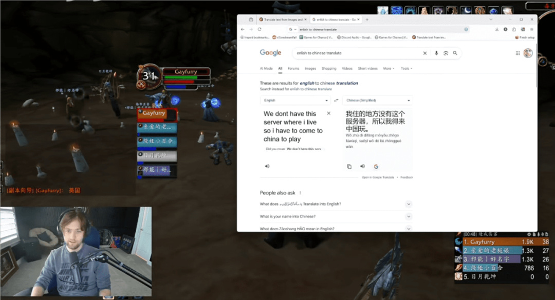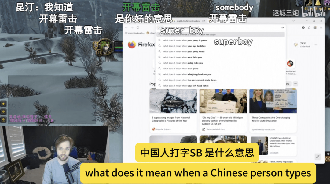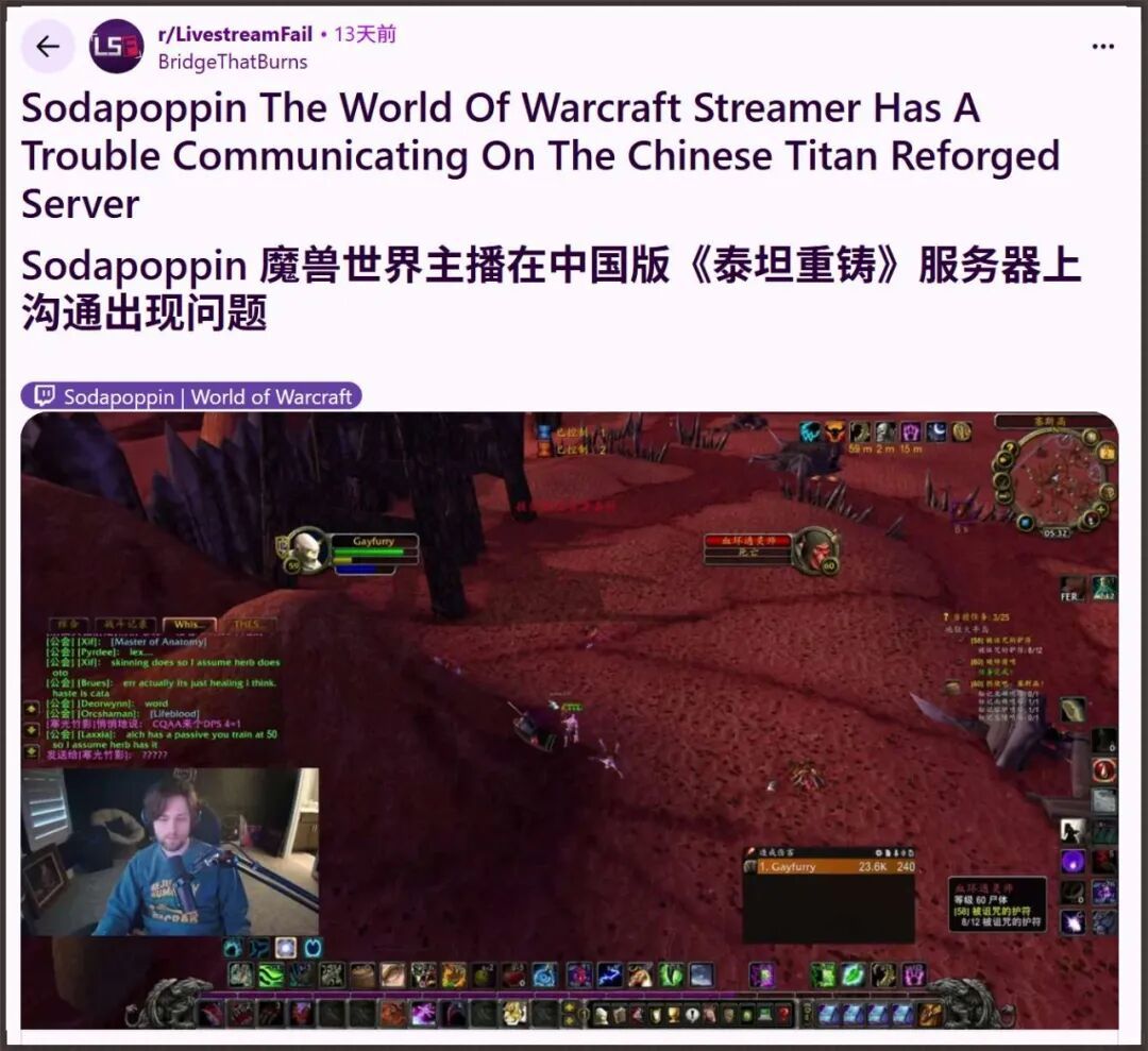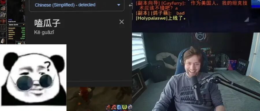 像Sodapoppin这样的大主播突然开始自发组团,来国服中文客户端的游戏,并努力学习中文。结果因为文化差异,闹出了不少笑话。