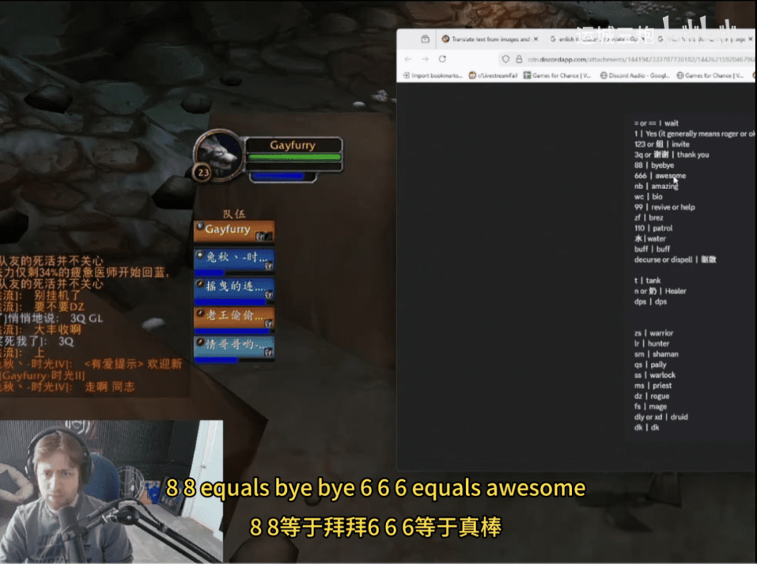 于是几个B站的魔兽UP主临时救火,整理了一份“黑话释义对照表”出来,给“八方来財”的老外们恶补一番。