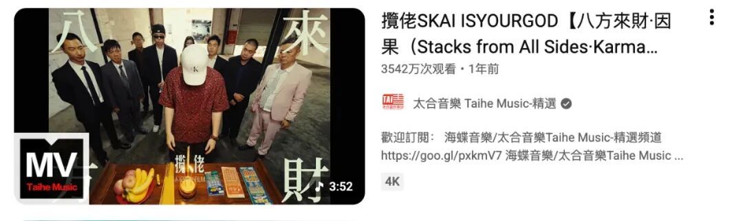 让我联想到《八方来财》这首歌的作者揽佬——很多人可能不知道,揽佬在外网非常火,这首中文说唱的油管播放量都超过3500万了。