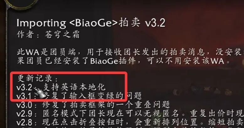 一些国服插件也紧跟时事推出英文版,比如BiaoGe(表格)拍卖插件——属于魔兽国服的底层逻辑,几乎人人安装。