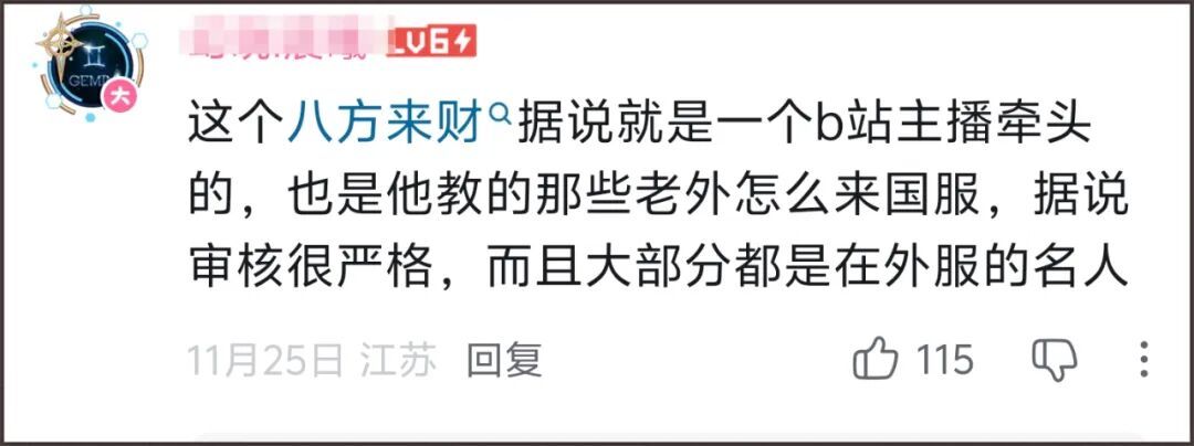 开服那一天,他们直播排队四五个小时,兴冲冲在时光服2区的联盟创建了角色,后来还建立了一个公会叫“八方来財”。