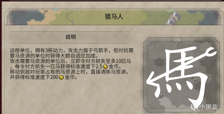攻击需要马资源的单位后,立即令对方损失至多10匹马,每令对方损失一匹可获得标准速度下2.5金币。 移动到敌对玩家占有的马资源上时,直接清除马资源,并获得标准速度下金币。