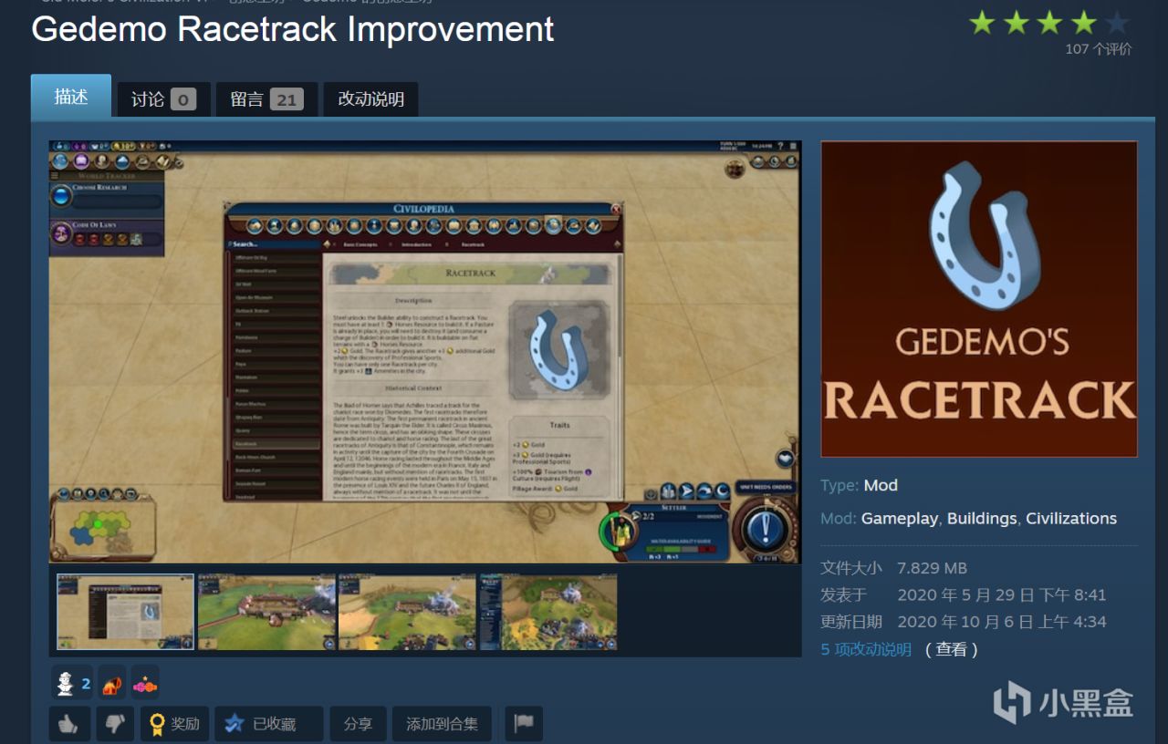 该模组为所有文明添加了一个新的改良设施:赛马场。当骑兵过时后,马匹资源便不再那么有用。有了赛马场,你现在可以产生娱乐度,如果押对了马……还能赚钱。