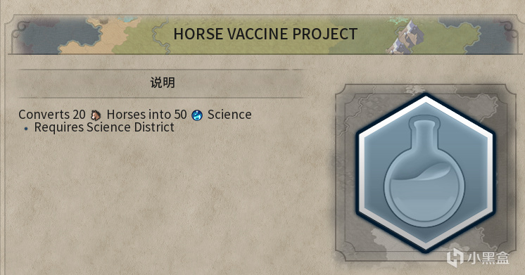 该模组新增了两个项目:科技用马匹和文化用马匹。简单来说就是一个消耗马匹产出瓶,另一个产出琴。让后期爆仓的那些闲置的马匹发挥作用吧!