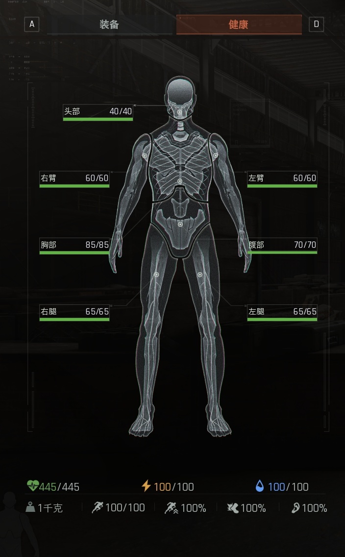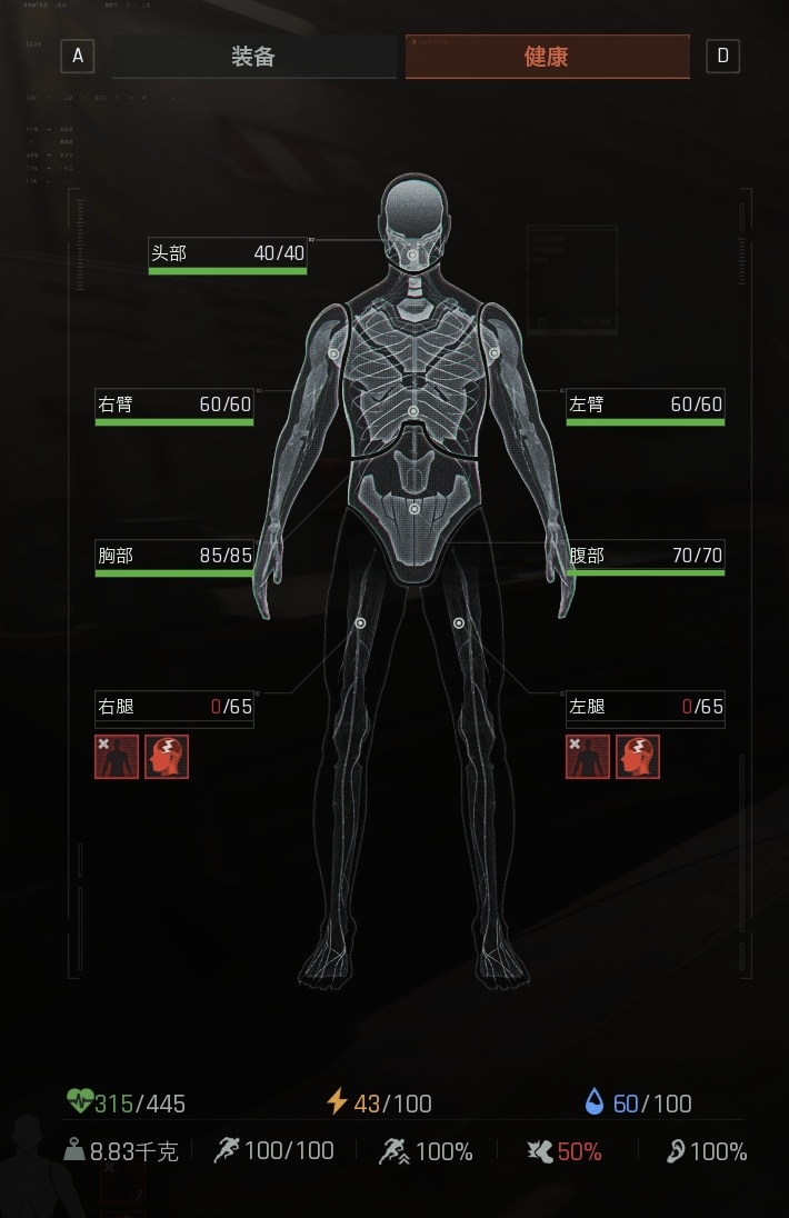人物体力上限看似100,实则为50+50。即下肢50+上肢50,两者分开计算