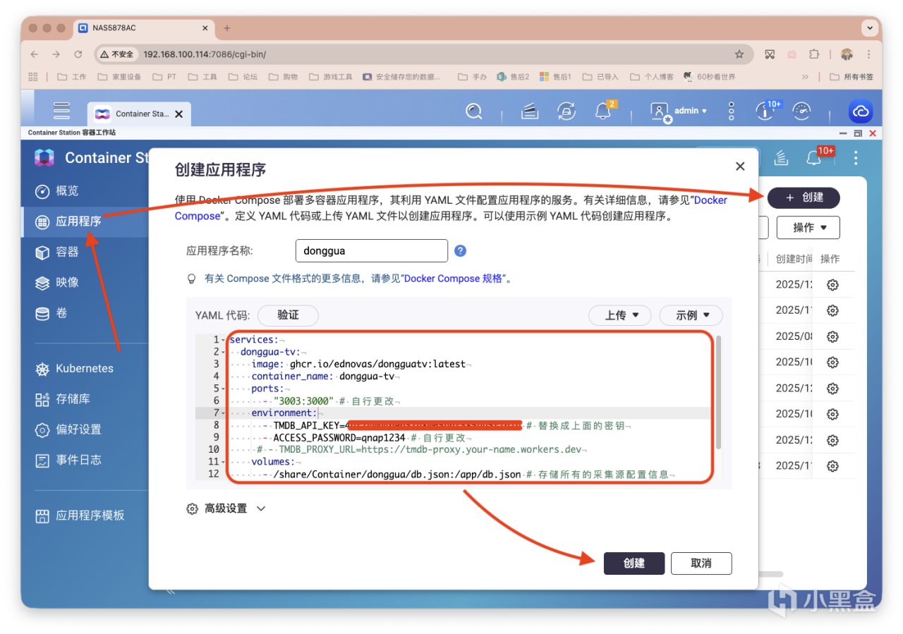 打开威联通的Container Station,创建新的应用程序。