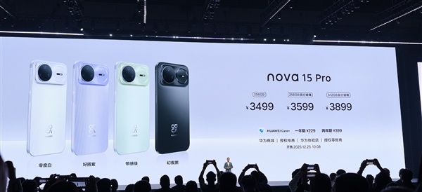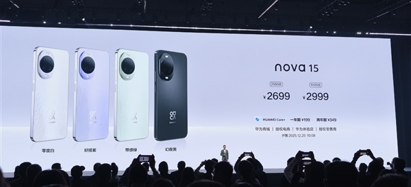 售价方面,nova 15 256GB售价2699元,512GB售价2999元,12月25日正式发售。