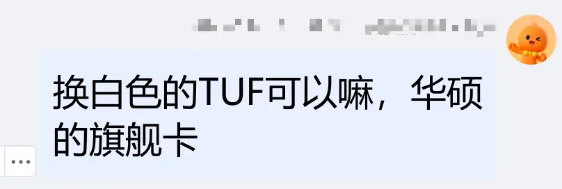 但是不巧沒有同款型號了,老哥的ATS被換成了TUF,因爲是旗艦卡,散熱模具更大了,老哥本來的機箱還裝不下,最後還是把電腦寄過來,換了個更大的新機箱才搞定,中間老哥一度想換一張N卡,命運多舛的一臺電腦,不過最終還是圓滿解決了