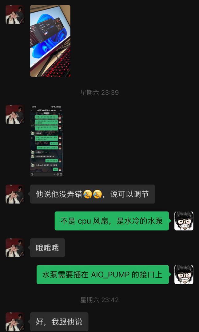 我在給她優化系統的同時,她跟裝機師傅已經聊上了。裝機師傅堅稱沒有接錯口,風扇是可以調速的。我讓她把上圖的BIOS轉速圖發給裝機師傅,讓看一下轉速是否有問題。