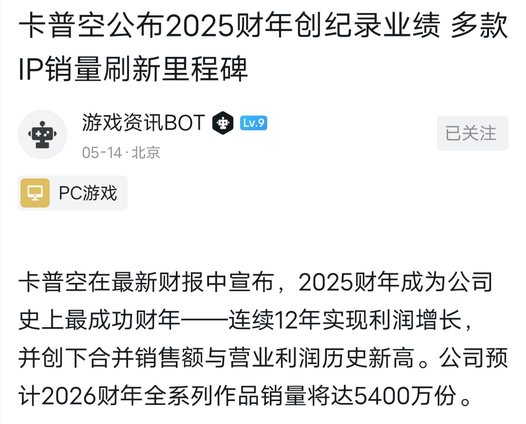 根据官方透露的财报来看,今年算是属于卡普空历史上最成功的一年!